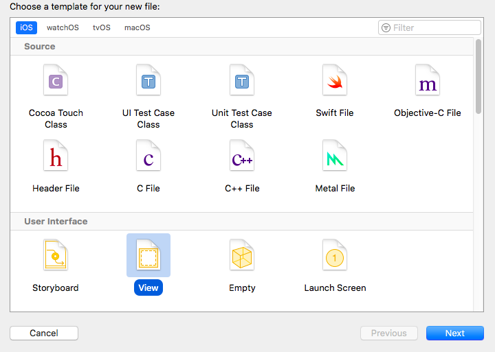 首先新建一个xib文件,xib文件就是一个部分的storyboard文件,可以设计任意画面