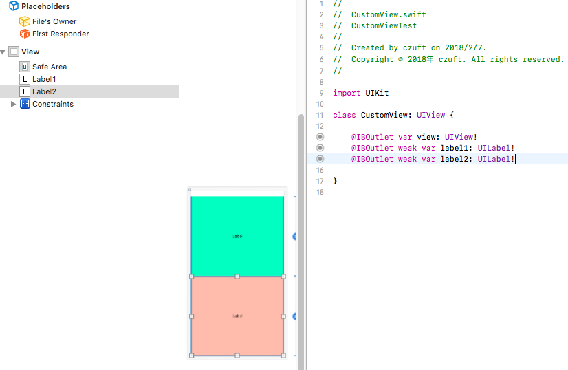 然后将UIView的Files's Owner中的Custom Class换成新建的类