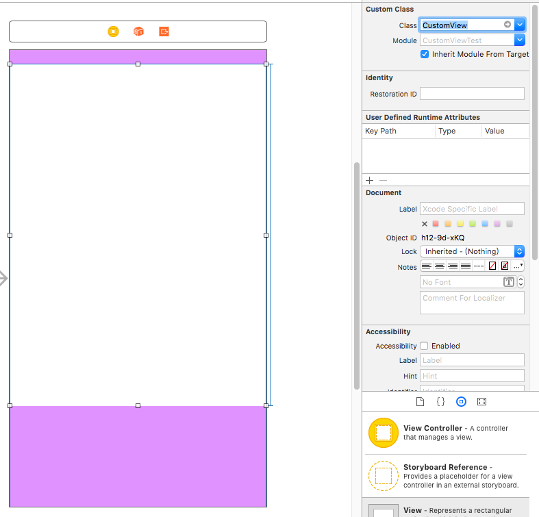 使用时只要在需要的画面中拖入自定义控件的父类,然后将Custom Class换成自定义类即可