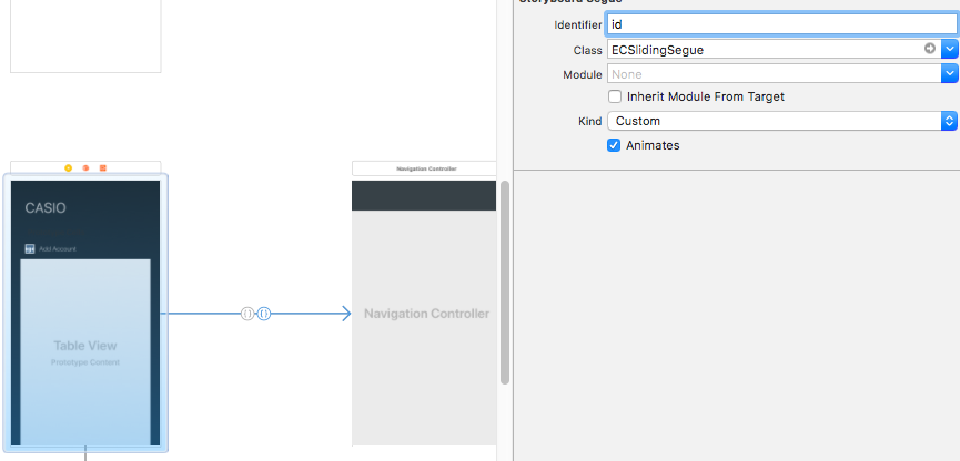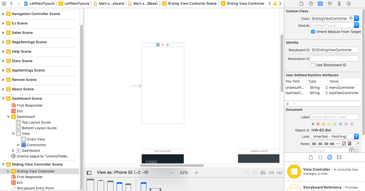 在Main.storyboard中添加一个ViewController,将他的Class改为SlidingViewController