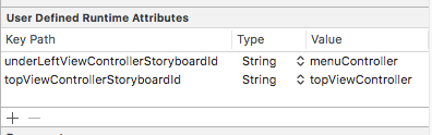 其中underLeftViewControllerStoryboardId为切换View时的Menu画面的ViewController的id
