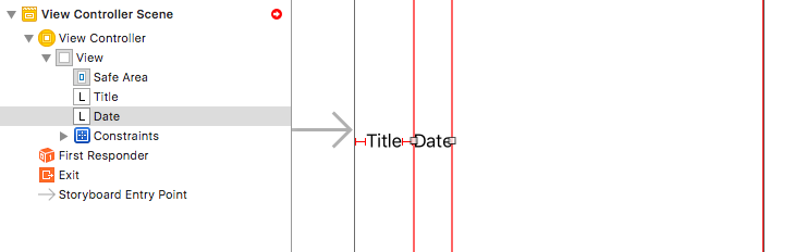 由于默认情况下,两个 UILabel 的抗拉伸、抗压缩优先级都是一样的。当单元格的空间不足以完全显示出标题和日期内容时,系统就不知道该压缩哪个 Label 的宽度。又或者空间充裕时,系统不知道该拉伸哪个 Label 的宽度。
