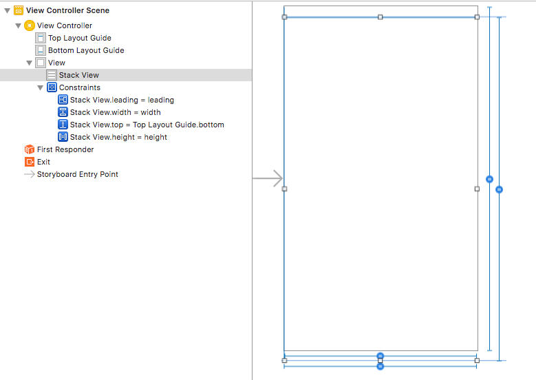(1)拖动一个StackView到storyboard中,并为StackView添加相应的约束,将StackView的高,宽度设置与父布局高度一致