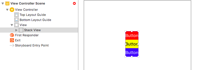 - 可以在自动布局栏中使用 Stack 选项。比如我们简单的选择两个或更多的视图,之后点击 Stack 选项,IB 将会把这些视图嵌入到一个 Stack View 中,并自动的调整。