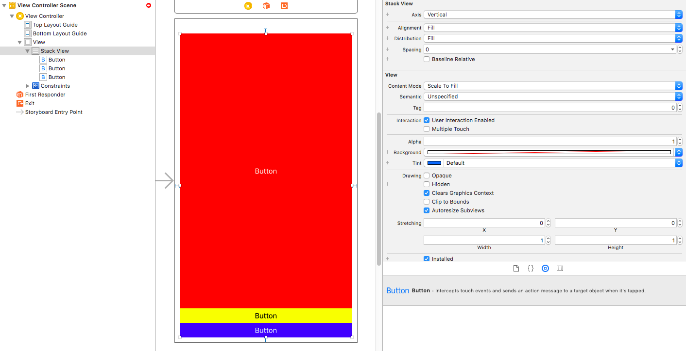 - Fill Proportionally:StackView 自己计算出它认为合适的分布方式。