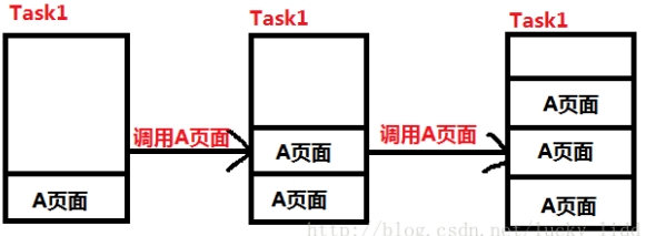例如:当A页面调用A页面,新建的A页面会被追加到 Task 路由里面。