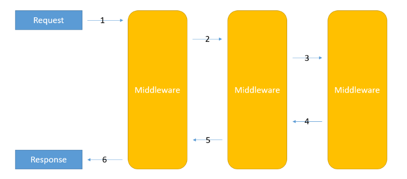 每层中间件接到请求后都可以直接返回或者调用下一个中间件, 一个比较好的例子就是: 在第一层调用authentication验证中间件, 如果验证失败, 那么直接返回一个表示请求未授权的response app.UseDeveloperExceptionPage(); 就是一个middleware, 当exception发生的时候, 这段程序就会处理它, 而判断env.isDevelopment() 表示, 这个middleware只会在Development环境下被调用
