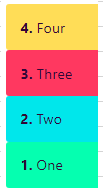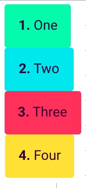 1 2 3 4 5 6 7 | eg: <div fxLayout="column"> <div>1. One</div> <div>2. Two</div> <div>3. Three</div> <div>4. Four</div> </div> |