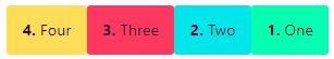 1 2 3 4 | eg: <div fxLayout="row"> <div>1. One</div><div>2. Two</div><div>3. Three</div><div>4. Four</div> </div> |