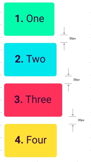1 2 3 4 | eg: <div fxLayout="column" fxLayoutGap="20px"> <div>1. One</div> <div>2. Two</div><div>3. Three</div><div>4. Four</div> </div> |