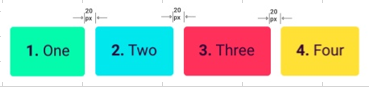 1 2 3 4 | eg: <div fxLayout="row" fxLayoutGap="20px"> <div>1. One</div> <div>2. Two</div><div>3. Three</div><div>4. Four</div> </div> |