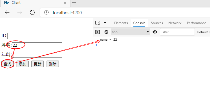 1 2 3 4 5 6 7 8 9 10 11 12 13 14 15 16 17 18 19 20 21 22 23 24 25 26 27 28 29 30 31 32 33 34  | // form.component.html <style> div { margin-bottom: 10px; } button { margin-right: 10px; } </style> <!--ID--> <div> <label>ID:</label> <input #id type="number" min="0"> </div> <!--姓名--> <div> <label>姓名:</label> <input #name type="text"> </div> <!--年龄--> <div> <label>年龄:</label> <input #age type="number" min="0"> </div> <!--按钮--> <button (click)="search()">查询</button> <button (click)="add()">添加</button> <button (click)="update()">更新</button> <button (click)="delete()">删除</button>  |