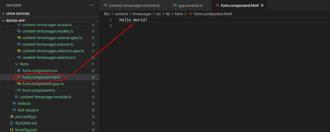 1 2 3 4 5 6 7 8 9 10  | // 找到下面三个文件 1. content-hrmanager.module.ts 2. content-hrmanager.selectors.ts 3. content-hrmanager.reducer.ts // 变更前 CONTENTHRMANAGER_FEATURE_KEY // 变更后 CONTENT_HRMANAGER_FEATURE_KEY  |