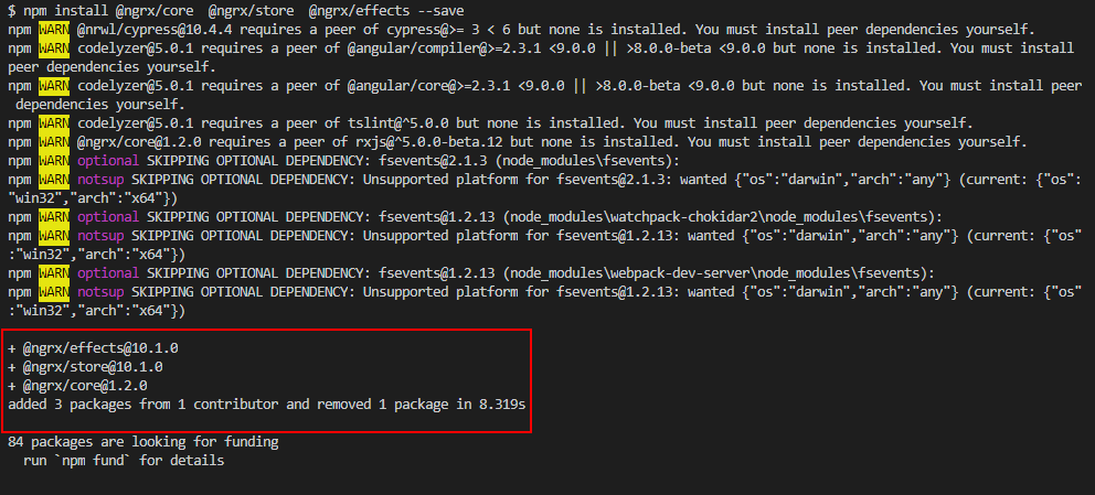 1  | npm install @ngrx/core @ngrx/store @ngrx/effects --save  |