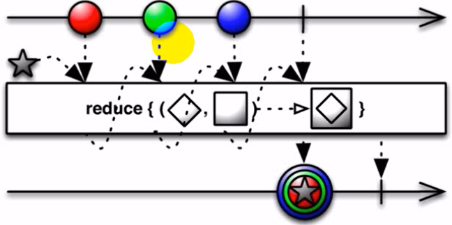 reduce和scan比较相似, 唯一的不同点在于, reduce只是发射最终值。