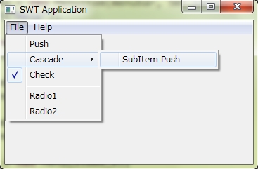 MenuItem item1 = new MenuItem(menubar, SWT.CASCADE);