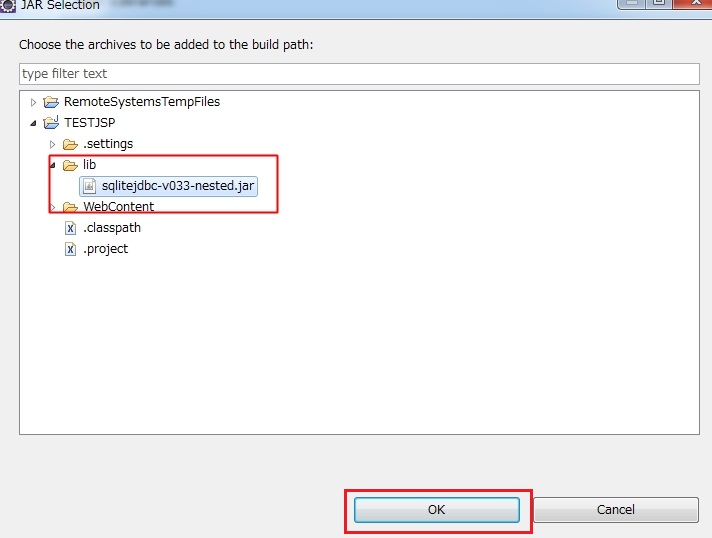 - sqlitejdbc-v033-nested.jarをフォルダー[lib]にコピー