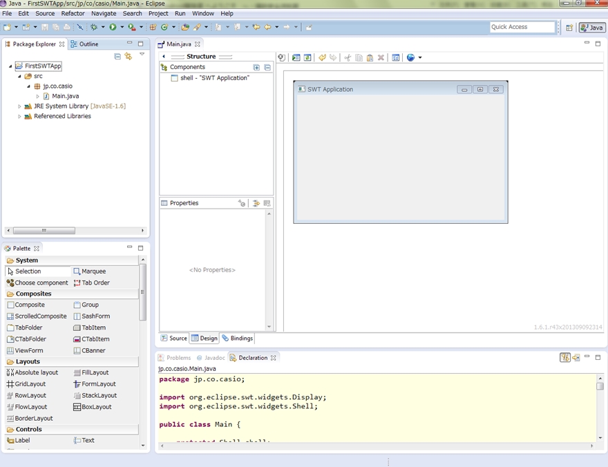 プロジェクトを作った後で、SWTプログラムを新規できる。