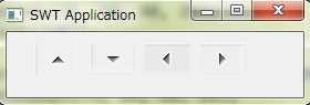1 2 3 4 5 6 7 8 9 10 11 12 13 14 15 | Button upButton = new Button(shell, SWT.ARROW | SWT.UP); upButton.setBounds(25, 10, 40, 28); upButton.setText("UP"); Button downButton = new Button(shell, SWT.ARROW | SWT.DOWN); downButton.setBounds(75, 10, 40, 28); downButton.setText("DOWN"); Button leftButton = new Button(shell, SWT.ARROW | SWT.LEFT); leftButton.setBounds(125, 10, 40, 28); leftButton.setText("LEFT"); Button rightButton = new Button(shell, SWT.ARROW | SWT.RIGHT); rightButton.setBounds(175, 10, 40, 28); rightButton.setText("RIGHT"); |