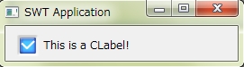 1 2 3 4 | CLabel lblNewLabel = new CLabel(shell, SWT.NONE); lblNewLabel.setImage(SWTResourceManager.getImage("...\\common_checkBox_on_n.png")); lblNewLabel.setBounds(10, 10, 167, 24); lblNewLabel.setText("This is a CLabel!"); |