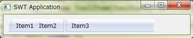 1 2 3 4 5 6 7 8 9 10 11 12 13 14 15 16 17 18 19 20 21 22 23 24 25 26 27 | CoolBar coolbar = new CoolBar(shell, SWT.NULL); coolbar.setBounds(10, 10, 300, 12); ToolBar toolbar1 = new ToolBar(coolbar, SWT.FLAT); ToolItem tItem1_1 = new ToolItem(toolbar1, SWT.PUSH); tItem1_1.setText("Item1"); ToolItem tItem1_2 = new ToolItem(toolbar1, SWT.PUSH); tItem1_2.setText("Item2"); CoolItem item1 = new CoolItem(coolbar, SWT.PUSH); item1.setControl(toolbar1); Point pt1 = toolbar1.computeSize(SWT.DEFAULT, SWT.DEFAULT); pt1 = item1.computeSize(pt1.x, pt1.y); item1.setSize(pt1); ToolBar toolbar2 = new ToolBar(coolbar, SWT.FLAT); ToolItem tItem2_1 = new ToolItem(toolbar2, SWT.PUSH); tItem2_1.setText("Item3"); CoolItem item2 = new CoolItem(coolbar, SWT.PUSH); item2.setControl(toolbar2); Point pt2 = toolbar2.computeSize(SWT.DEFAULT, SWT.DEFAULT); pt2 = item2.computeSize(pt2.x, pt2.y); item2.setSize(pt2); shell.setSize(400, 80); shell.open(); |