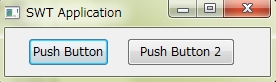 1 2 3 4 5 6 7 | Button pushButton = new Button(shell, SWT.PUSH); pushButton.setBounds(23, 10, 81, 28); pushButton.setText("Push Button"); Button newButton = new Button(shell, SWT.NONE); newButton.setBounds(122, 10, 81, 28); newButton.setText("Push Button 2"); |