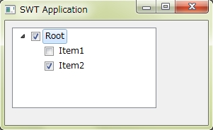 また、SWT.CHECKを指定することで、ツリーの各要素にチェックボックスを表示することができます。