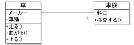 - 関連(association) クラス間で結びつきがある場合、関連で表現する事ができる。