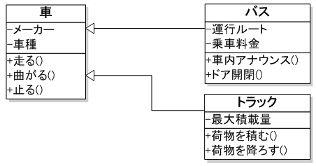 - 汎化(generalization) Javaなどの継承、つまり「is a」の関係を表現する。