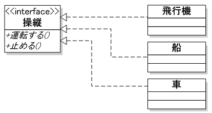 Javaでいうinterfaceと同等の意味で、相手を具象化する関係のとき用いる表現です。