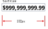 textViewに全表示の場合、フォントが26、桁数が15 15桁以上になる場合、フォントサイズを下げて表示する