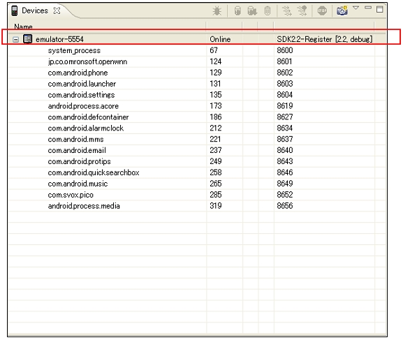 - 対応方法: メニューで「Window」→「Open Perspective」→「DDMS」を押すと、下記のイメージを表示します。Deviceでイメージの通りです、クリックします。 EclipseのLogCatはOKとなります。