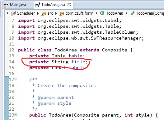 1 2 3 4 5 6 7 | Composite composite = new Composite(shell, SWT.NONE); // 1:GridLayoutの列が1列、 // true:この列の幅はスクリーンの幅 GridLayout gl_composite = new GridLayout(1, true); gl_composite.marginWidth = 0; gl_composite.marginHeight = 0; composite.setLayout(gl_composite); |