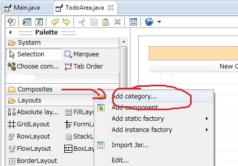 既存SWTコントロールなどを組み合わせて、カスタマイズの使い方法を示します。