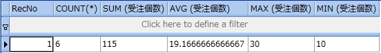 集約関数とは、1つの列グループに対して施すことのできる演算機能をいいます。集約関数は列グループ全体につき 1つの値を生成します。集約関数には次の 5つがあります。