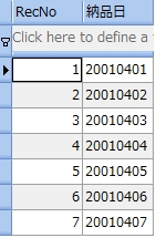 DISTINCT という引数を利用すれば、出力から重複した値を削除することができます。次の例では、受注表から納品日を出力しますが、重複するものを削除して表示します。 sample-04-3: